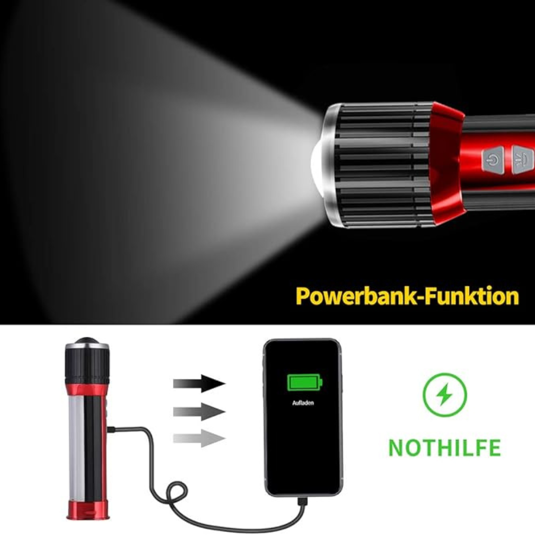 🔦 كشاف متعدد الوظائف - إضاءة قوية500متر، شحن سريع، ومقاوم للتحديات 🔋اضاءة تدوم 8 ساعات